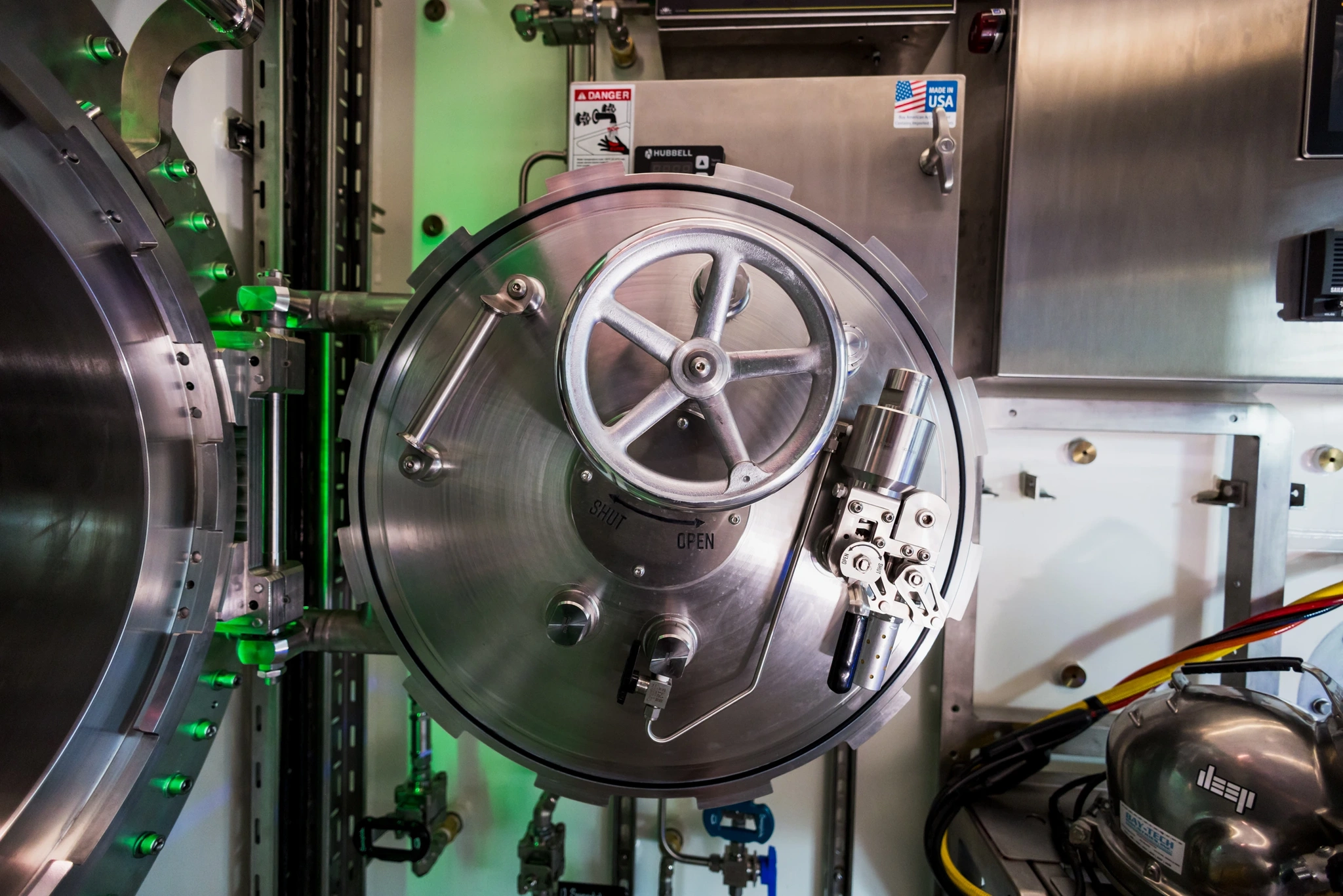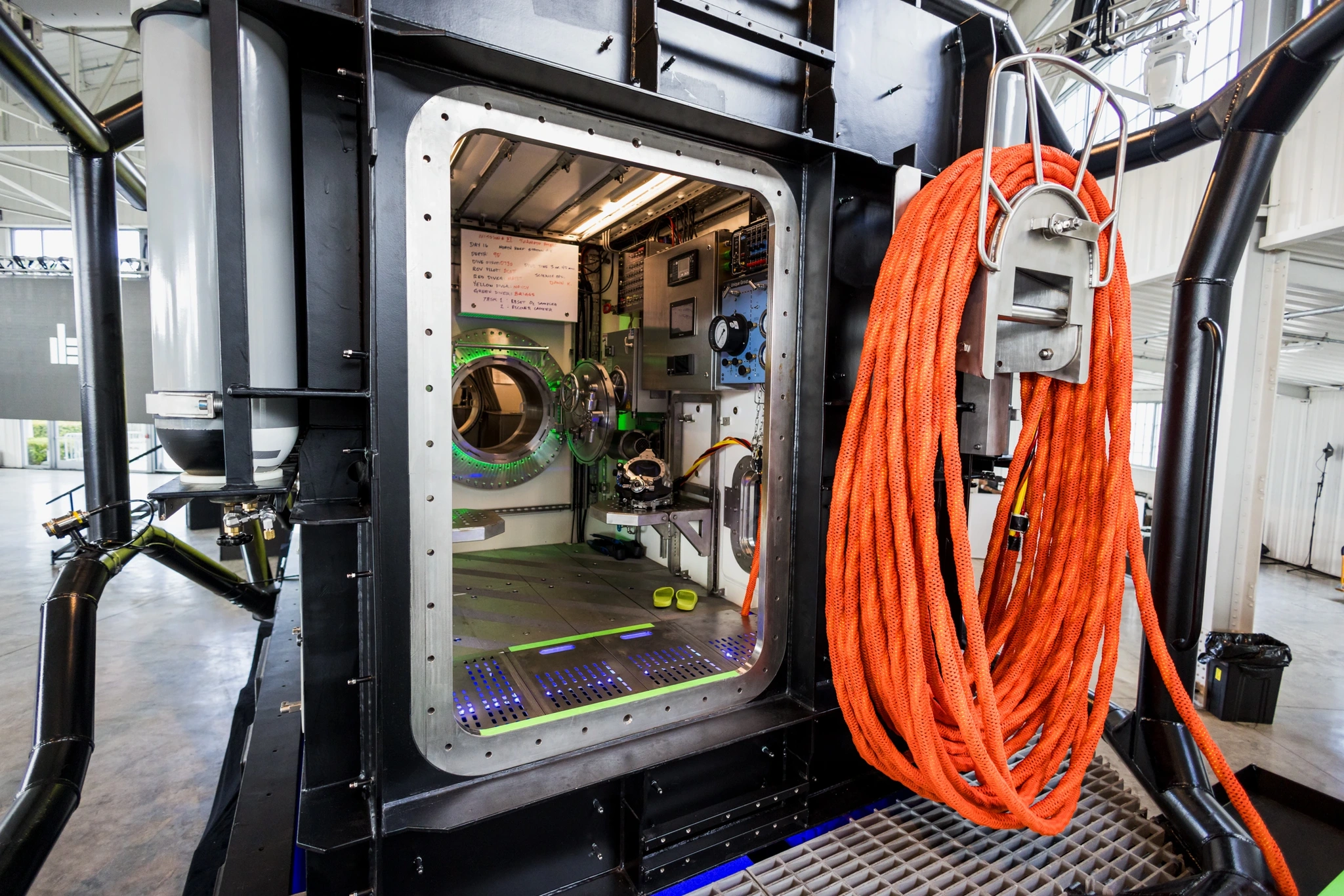The heart of Vanguard, the living chamber is where the crew eat, sleep, work and go about their daily tasks when they’re not diving. Inside the chamber is a comfortable multi-use space for work, relaxation and sleeping, a galley area to prepare meals, and bathroom facilities.